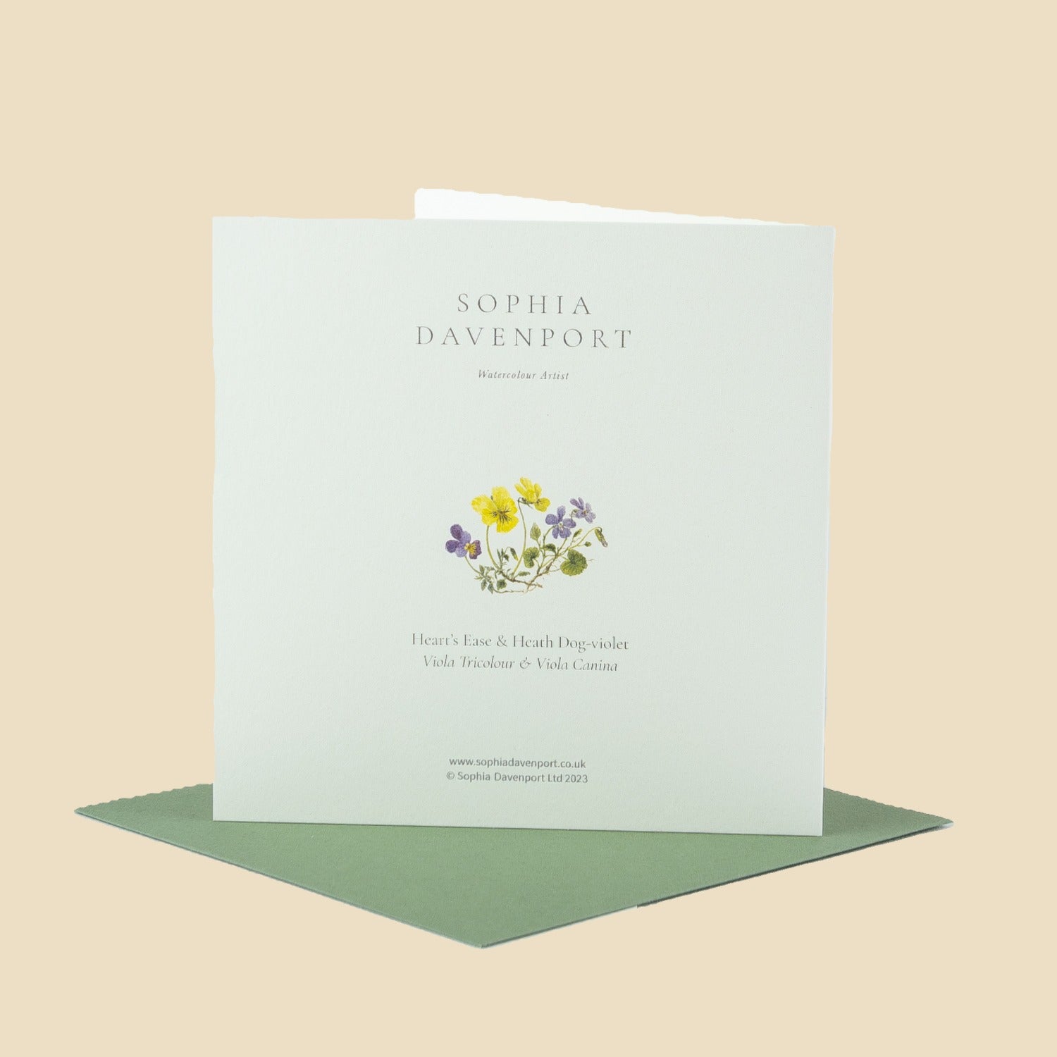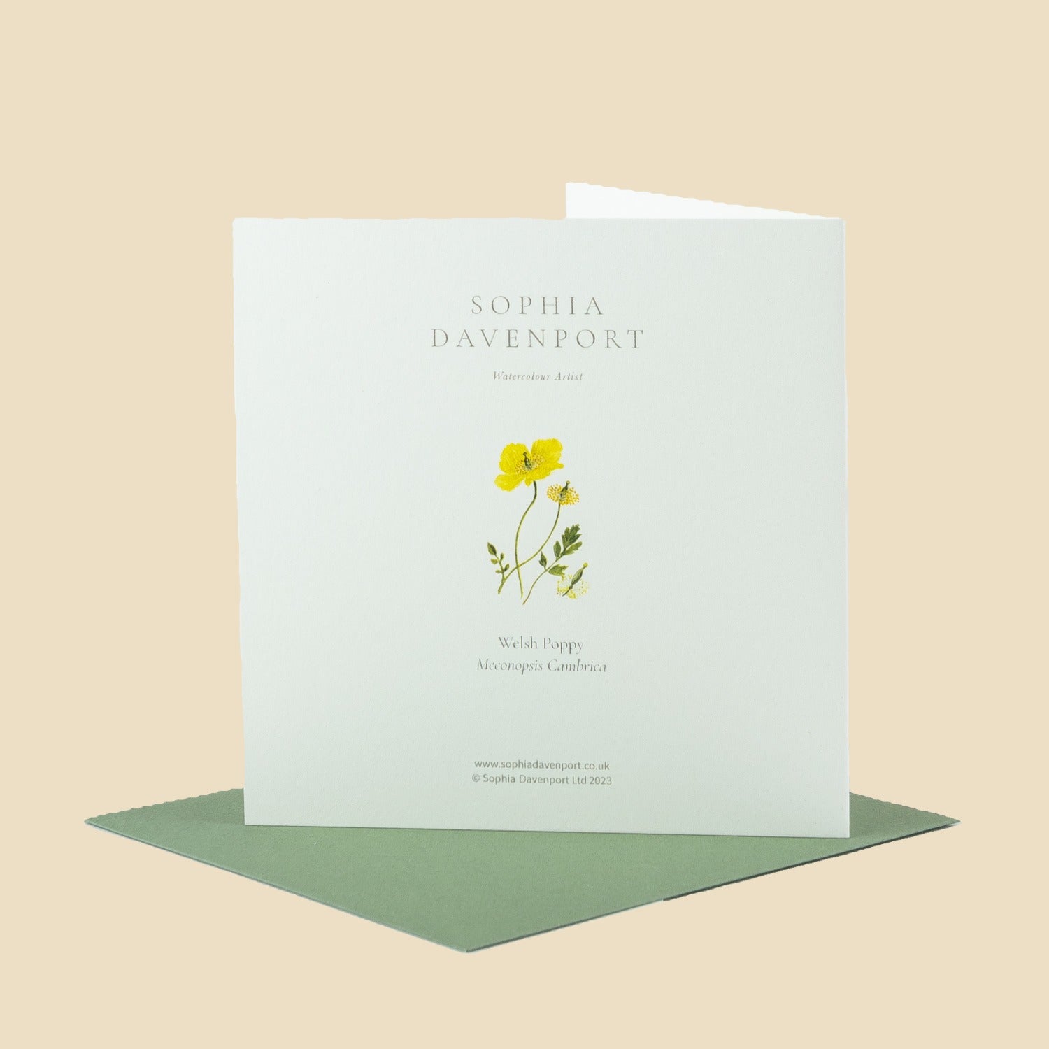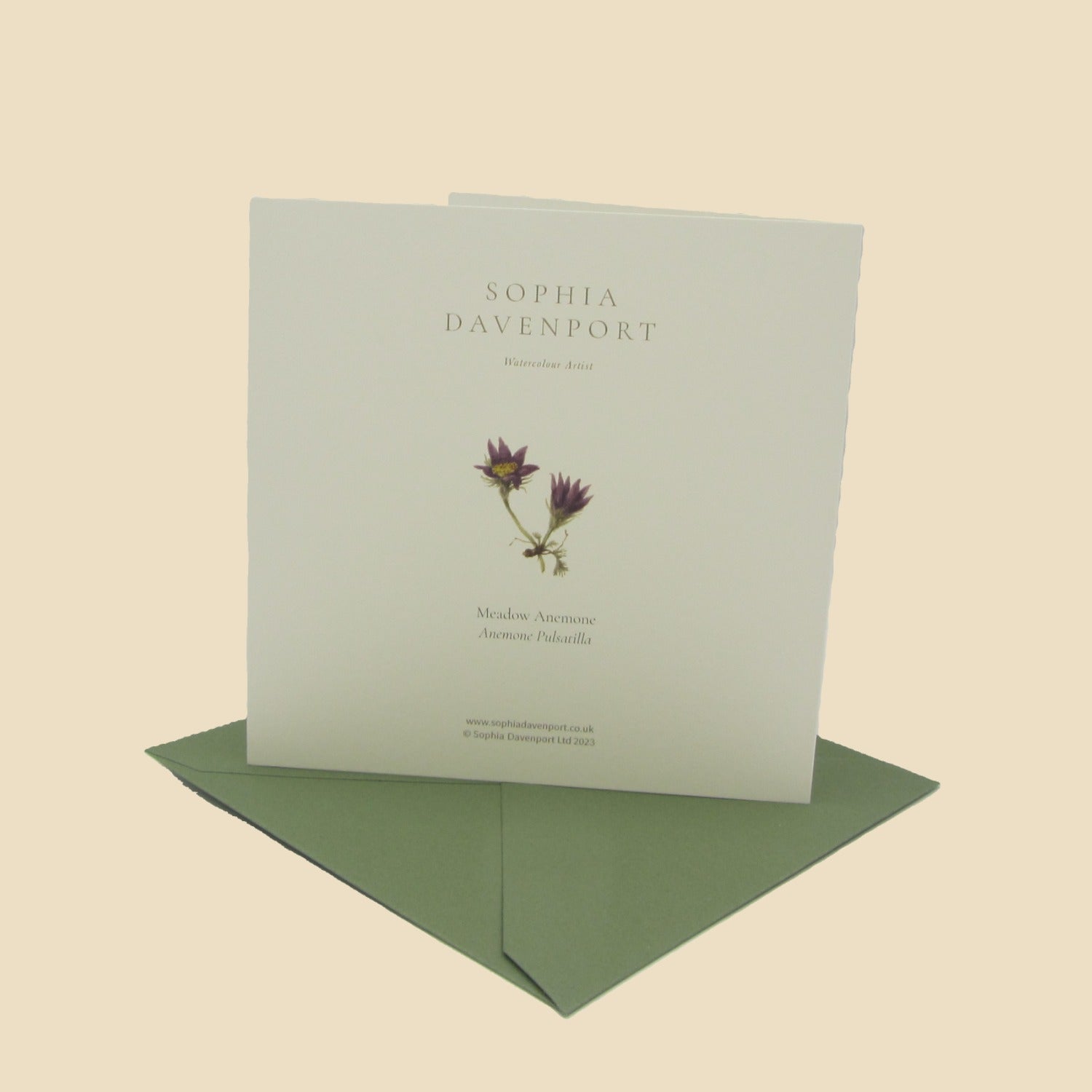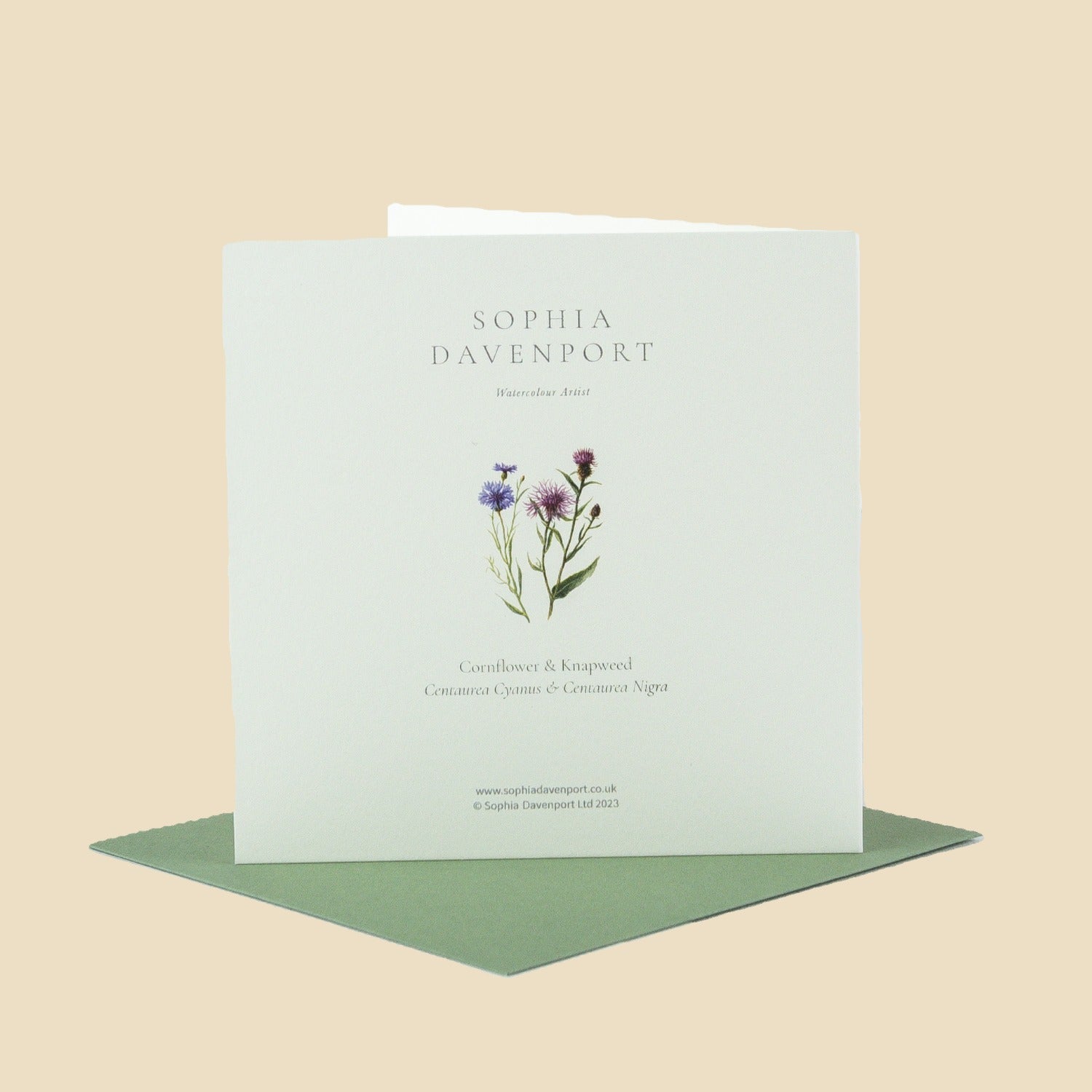 Top-quality rectangular and square cards and notelets, left blank inside for personal messages. Sophia's original watercolours are carefully reproduced on 6" x 6" (150mm x 150mm), 5" x 7" (128mm x 179mm), and 5" x 5" (125mm x 125mm) 320gsm vellum ivory card, complete with a 135gsm vintage green envelope. Produced in the UK, cards and envelopes are made with papers that are FSC accredited, and the clear, bio-based wrappers are compostable - so the complete product can be easily recycled.