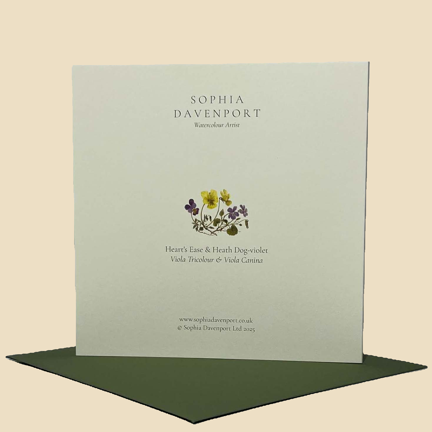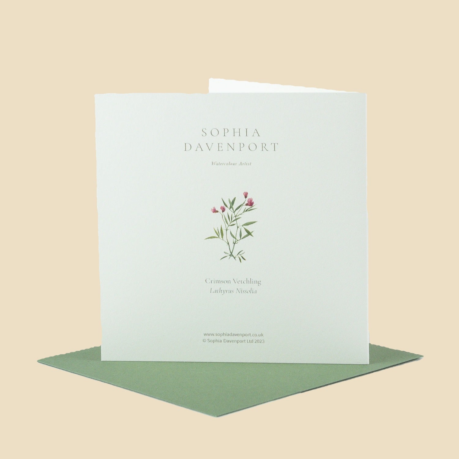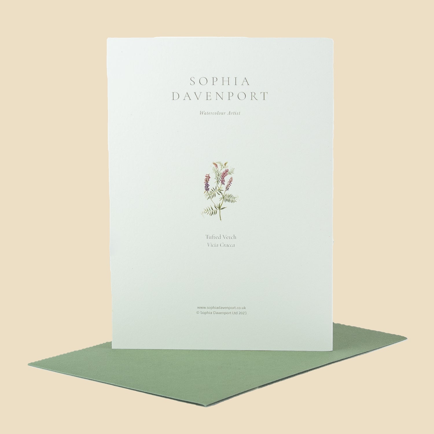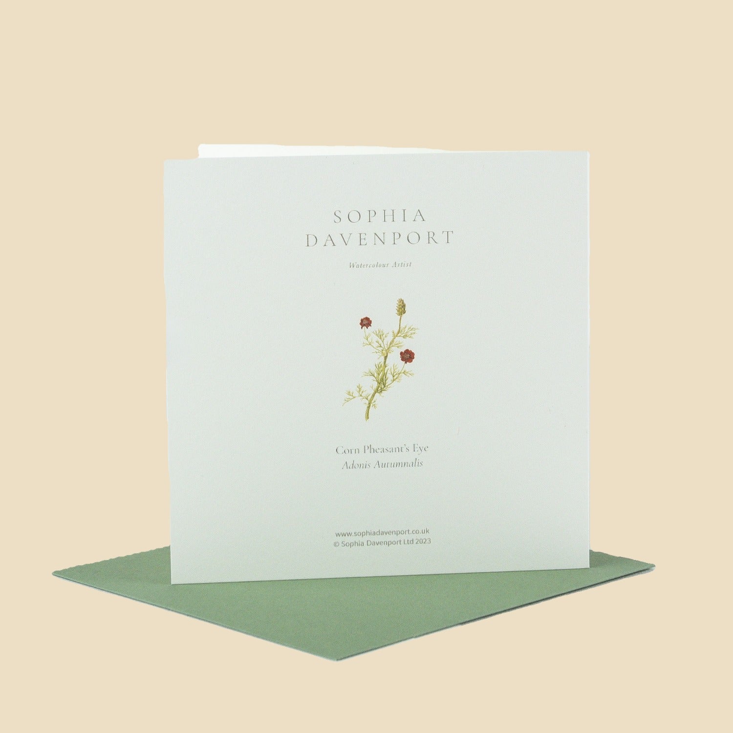 Top-quality rectangular and square cards and notelets, left blank inside for personal messages. Sophia's original watercolours are carefully reproduced on 6" x 6" (150mm x 150mm), 5" x 7" (128mm x 179mm), and 5" x 5" (125mm x 125mm) 320gsm vellum ivory card, complete with a 135gsm vintage green envelope. Produced in the UK, cards and envelopes are made with papers that are FSC accredited, and the clear, bio-based wrappers are compostable - so the complete product can be easily recycled.